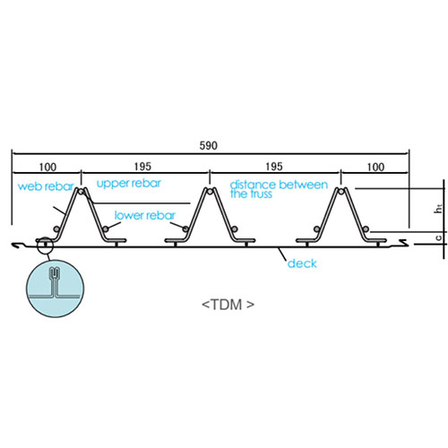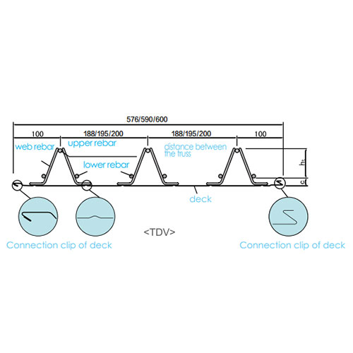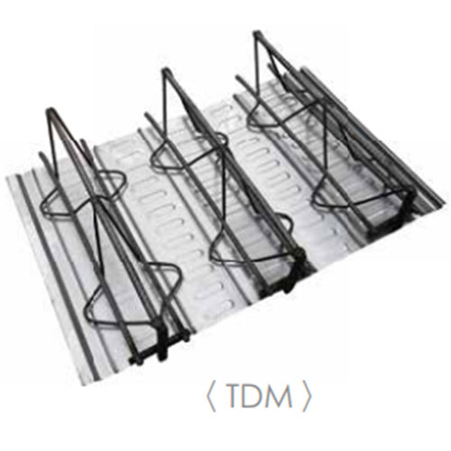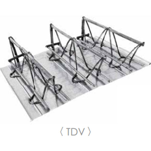 Duowei.TDV, TDM steel bar truss deck is a composite template which is welded into one combination by the steel truss and galvanized steel rolled-plate, and the steel truss is welded by rebar in the shop. In the construction phase, the steel truss deck can sustain the construction loads, and be laid on the beam directly, then do some simple rebar work, it can do the concrete work. the steel truss deck replaces the template without erection and demolition, so improve the construction efficiency.